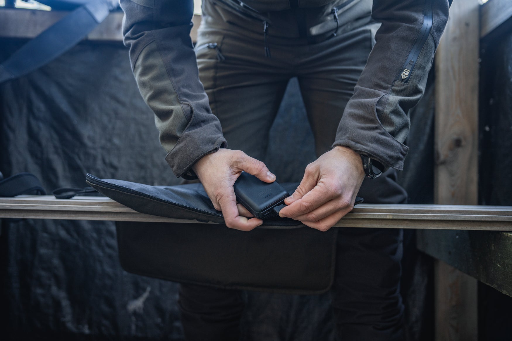 Den generösa värmedynan ger behaglig temperaturreglering med tre valbara nivåer som styrs via en knapp. På sidan finns en ficka med USB-C-anslutning där du kopplar in en powerbank, vilket gör att värmen kan hållas igång längre.