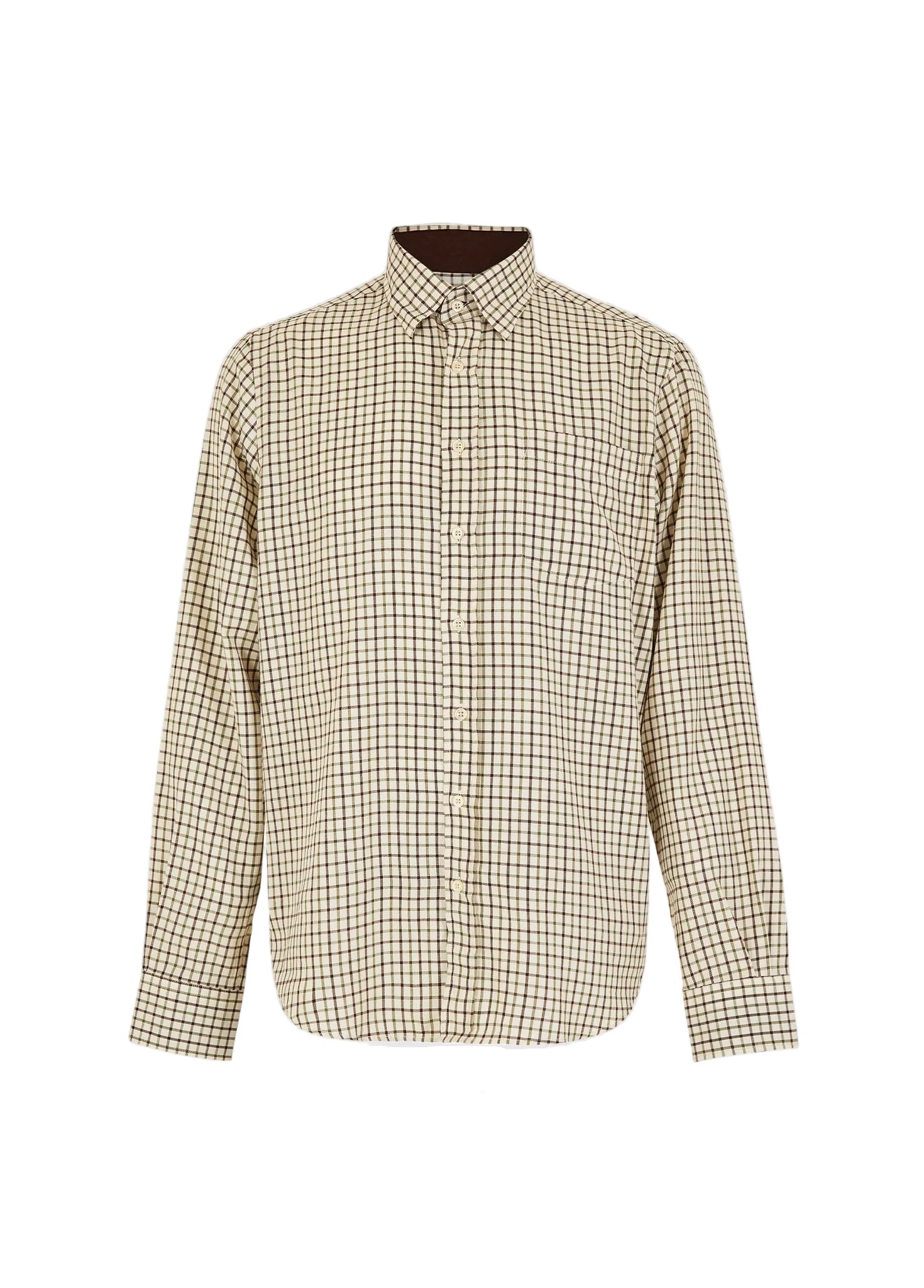 Connell Tattersall Shirt i Mahogany är en klassisk skjorta tillverkad i mjuk, borstad bomull med det karakteristiska Tattersall-rutiga mönstret.