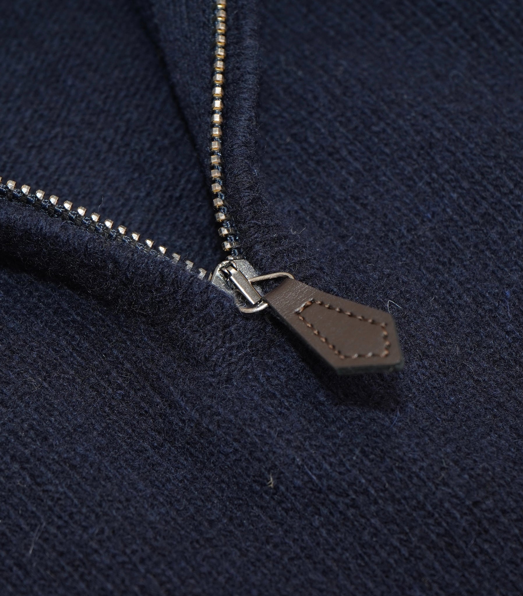 Navy half-zip tröja från vårt varumärke Grinda, tillverkad i Italien av 7-gauge lammull för en utmärkt kombination av komfort och värme.