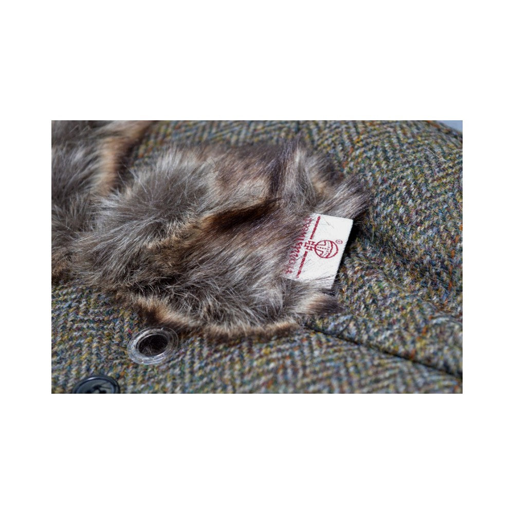Upptäck den ultimata trappermössan för kallt väder. Mössan kombinerar en exklusiv yta i handvävd Harris Tweed av 100 % ny ull med en mjuk insida i fuskpäls för optimal värme och skydd mot vind. Harris Tweed, en ikonisk textil från Skottland, tillverkas enligt strikta regler och handstämplas av Harris Tweed Authority för att garantera högsta kvalitet.