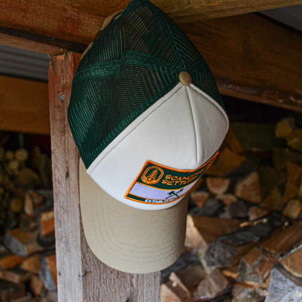 En truckerkeps i grönt och vitt som ger en avslappnad, modern känsla.