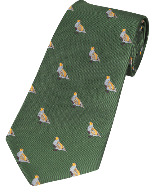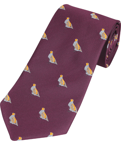 Jaktslips med rapphöna - Grön och vinröd med motiv.