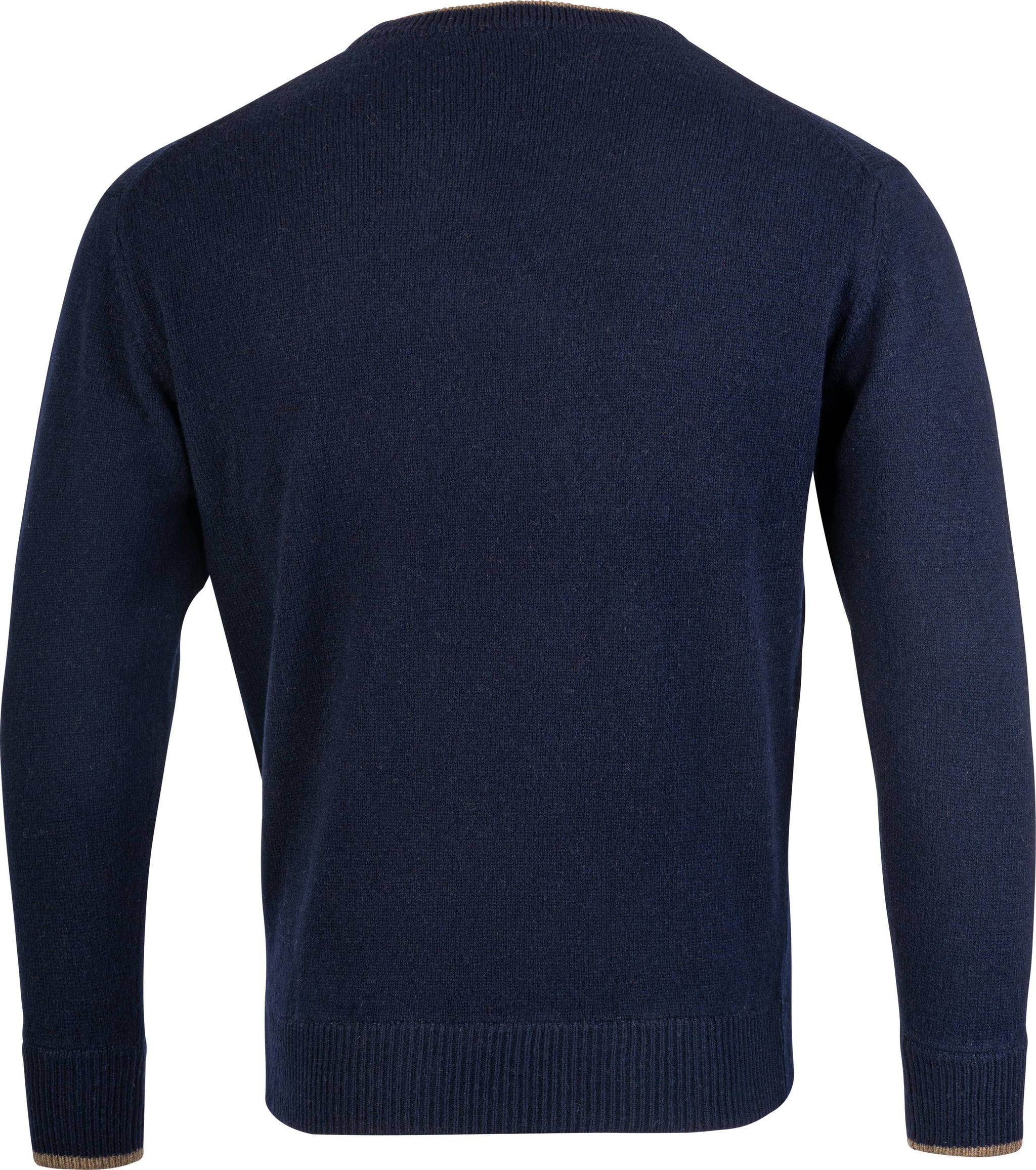 Rundhalsad lammullströja för herr i mörkblå färg - Ett smart val för dig som vill ha en varm jakttröja i ull.