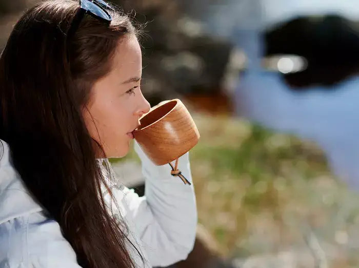 Denna klassiska träkåsa är gjord av svenska Hällmark och rymmer 15 cl samt att den är gjord i trä.