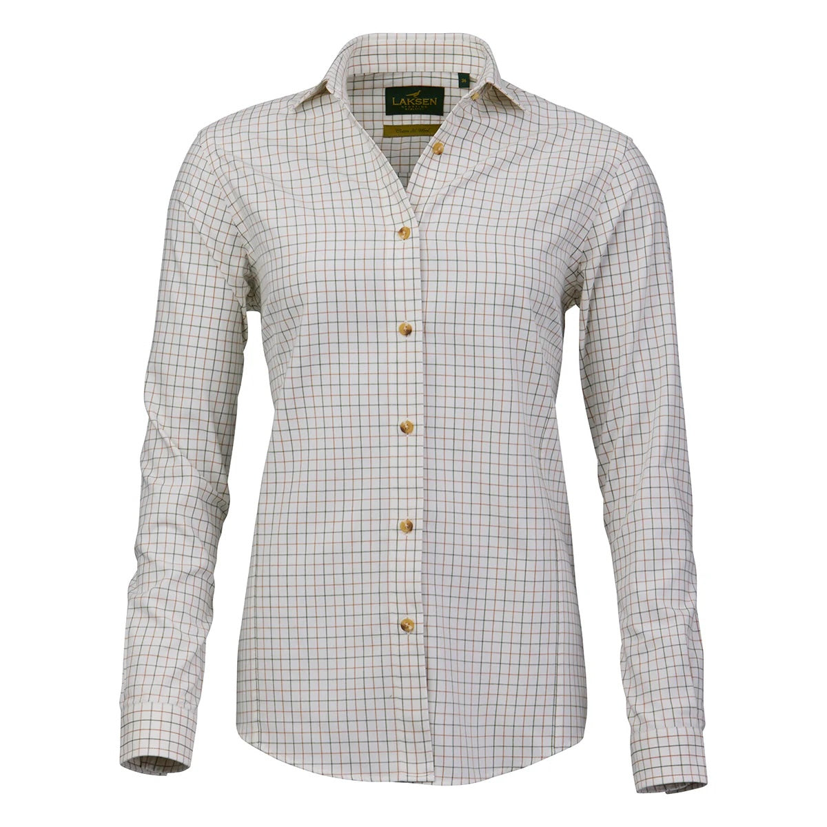 Iris Cotton Wool Shirt från Laksen är en mjuk och klassisk jaktskjorta för dam i tattersall-rutmönster, tillverkad i en blandning av 85% bomull och 15% ull.