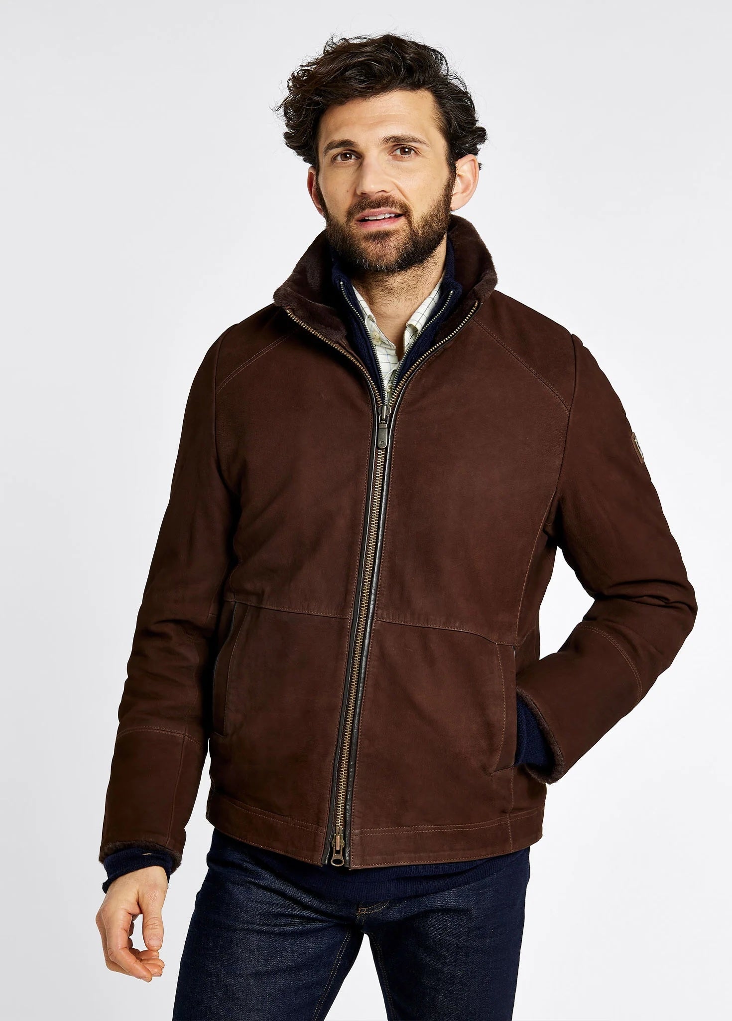 Den varma valnötsbruna tonen och det mjuka fodret gör jackan perfekt för kyliga dagar, oavsett om du bär den med robusta boots på landet eller med snörade kängor i stan.