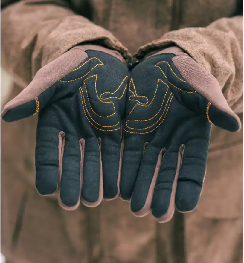Handflatorna är förstärkta med ett kontrastmaterial som ger bättre grepp och samtidigt har en stilren Argali-detalj som ger ett visuellt lyft. Handskarna är både slitstarka och lätta, vilket gör dem bekväma att bära hela dagen.