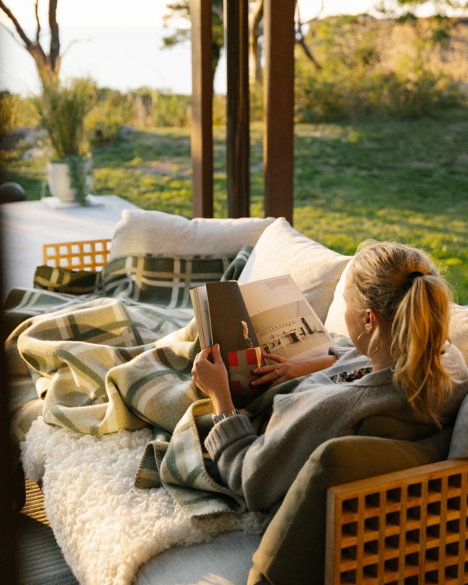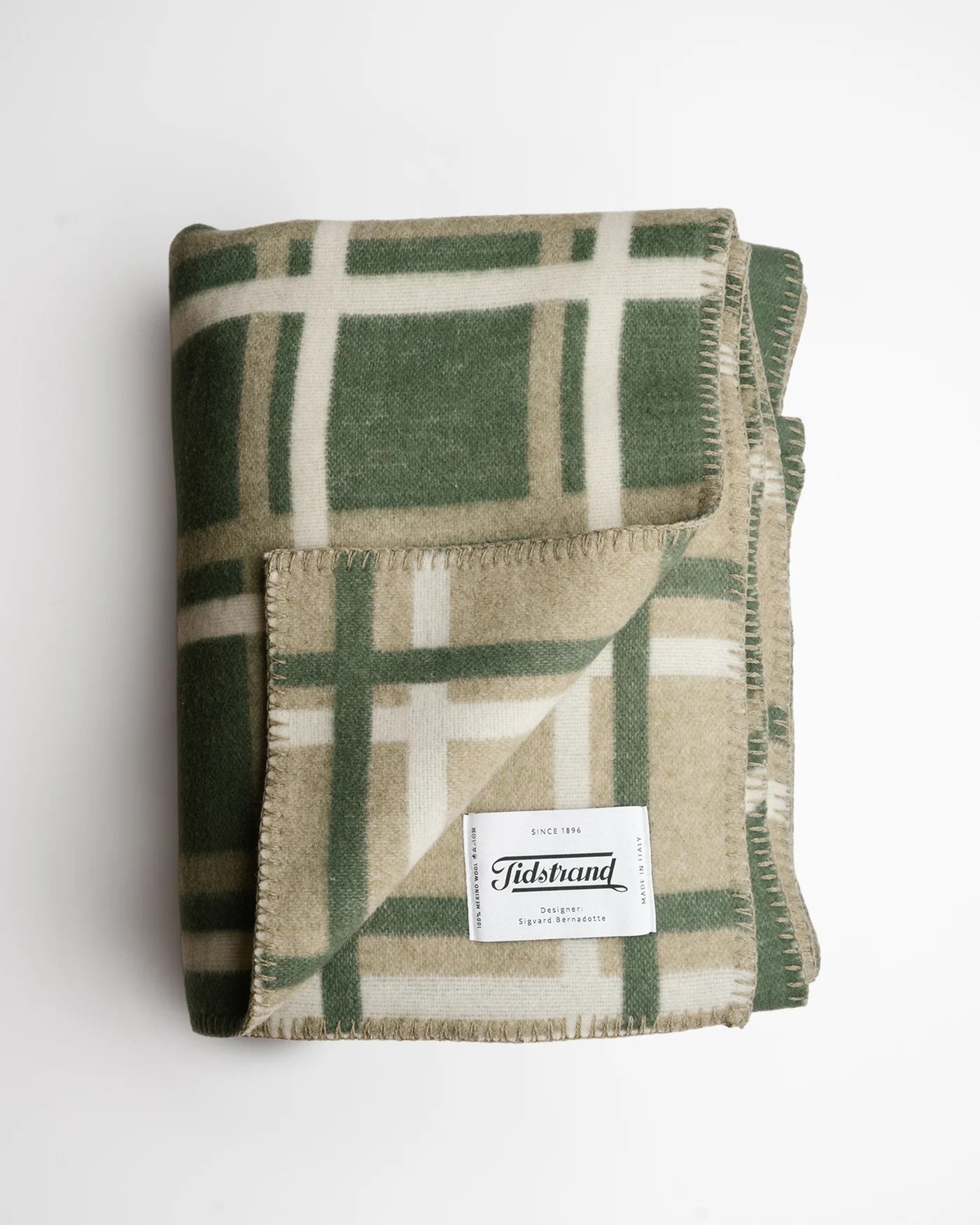 Formgiven av Sigvard Bernadotte för Tidstrands Filtar och tillverkad i Italien, är Oliv en filt i 100 % merinoull som förenar klassisk design med hög komfort.