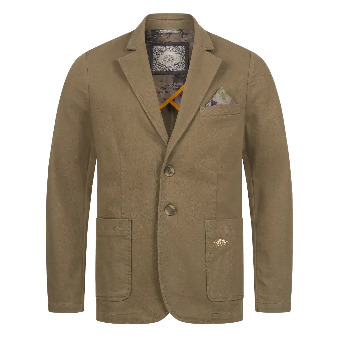 Jackan finns i färgerna mörk oliv och sand, och den kamouflagemönstrade näsduken i bröstfickan tillsammans med Argali-logotypen på vänster ficka ger ett modernt och unikt utseende.