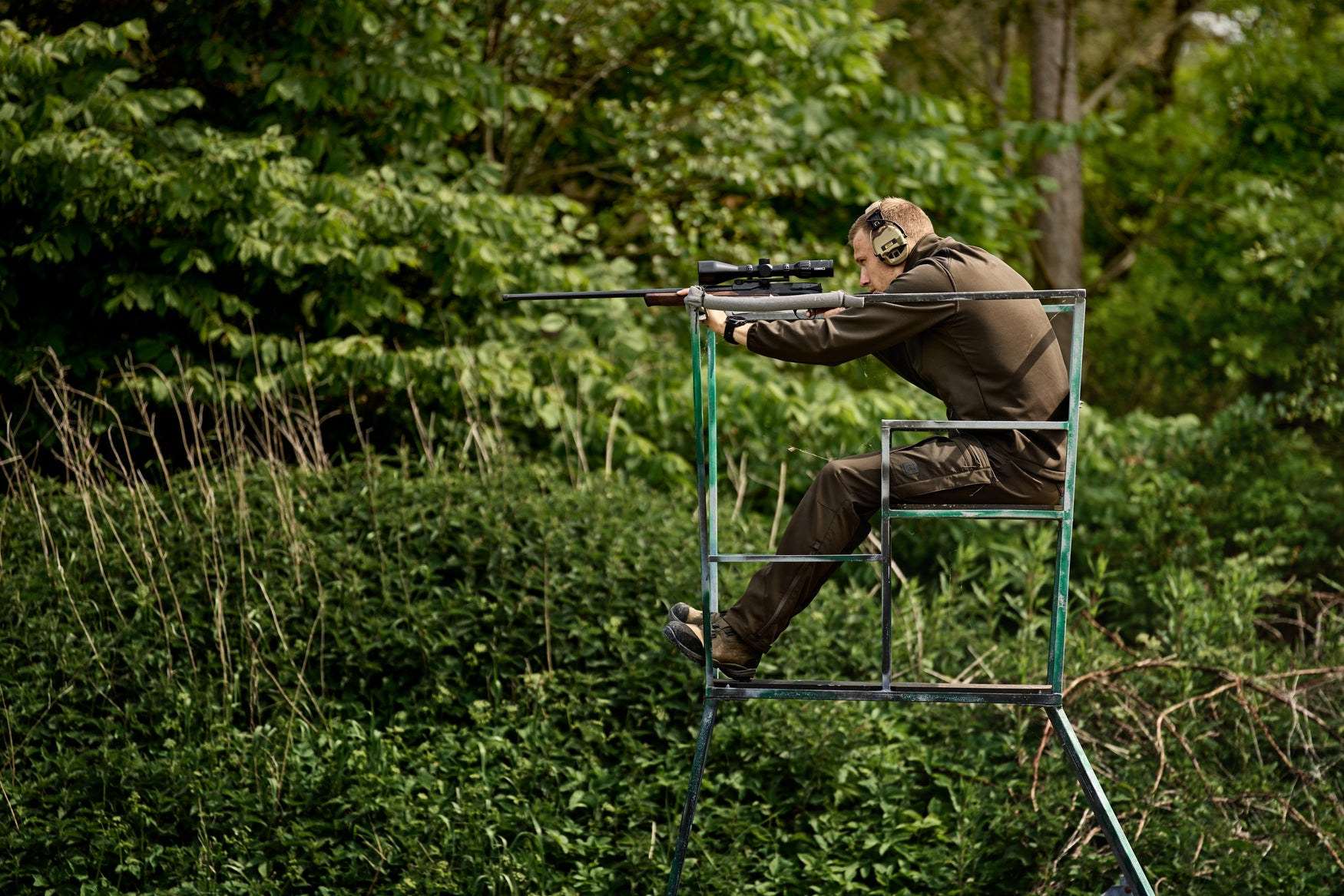 Den nutida silhuetten och det följsamma stretchmaterialet ger god rörlighet vid klättring, smygjakt och längre förflyttningar. Den elastiska midjan med jeansknapp ger en trygg och anpassningsbar passform.