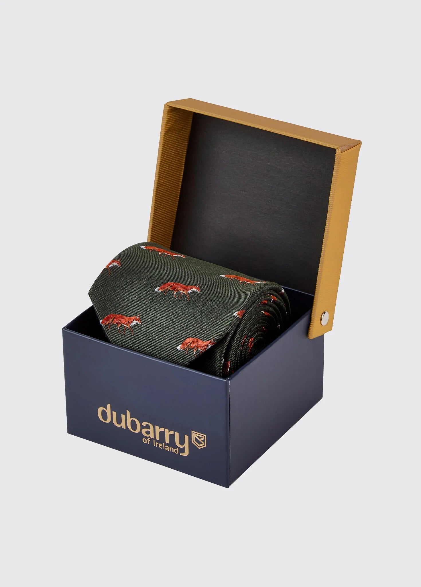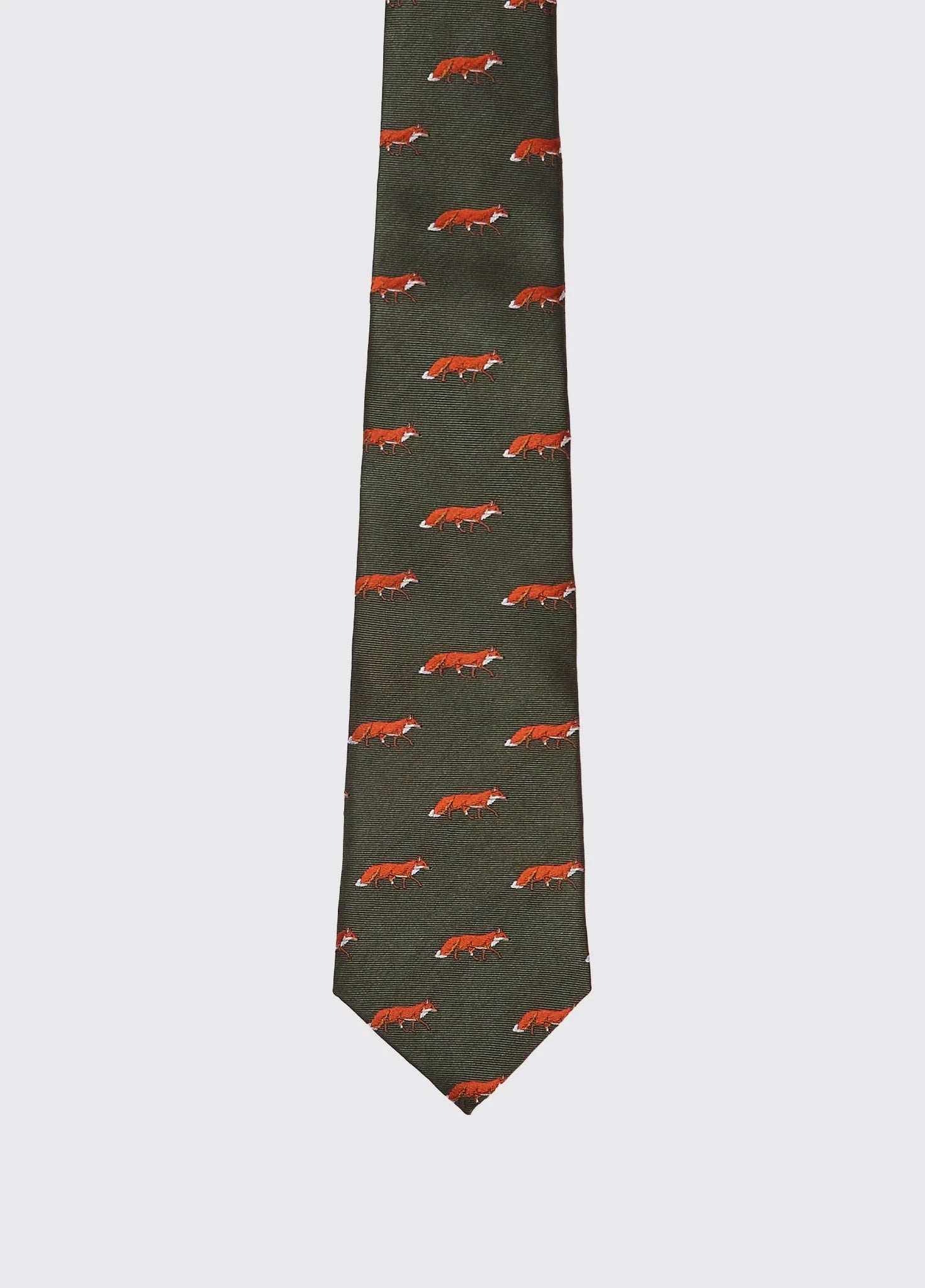 Klassisk och stilig jaktslips i silke med motiv av räv - från irländska Dubarry.