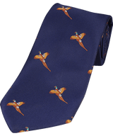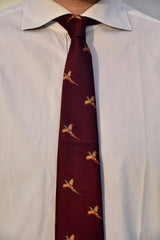 En jaktslips med fasanmotiv, tillgänglig i blå och vinröd.