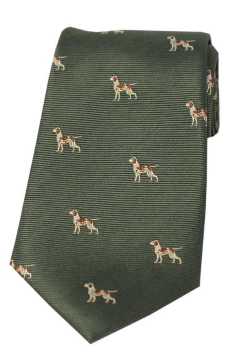 En tidlös jaktslips i silke med motiv av hundar - välj mellan tre olika färger.