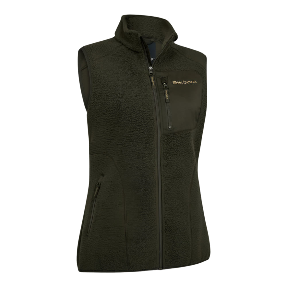 Lady Atlas fleeceväst från Deerhunter är ett lätt och tyst mellanlager, utformat för att följa kroppens rörelser utan att störa omgivningen. Perfekt som värmande lager under jaktjackan eller som ytterplagg under rörliga aktiviteter i svalare väder.